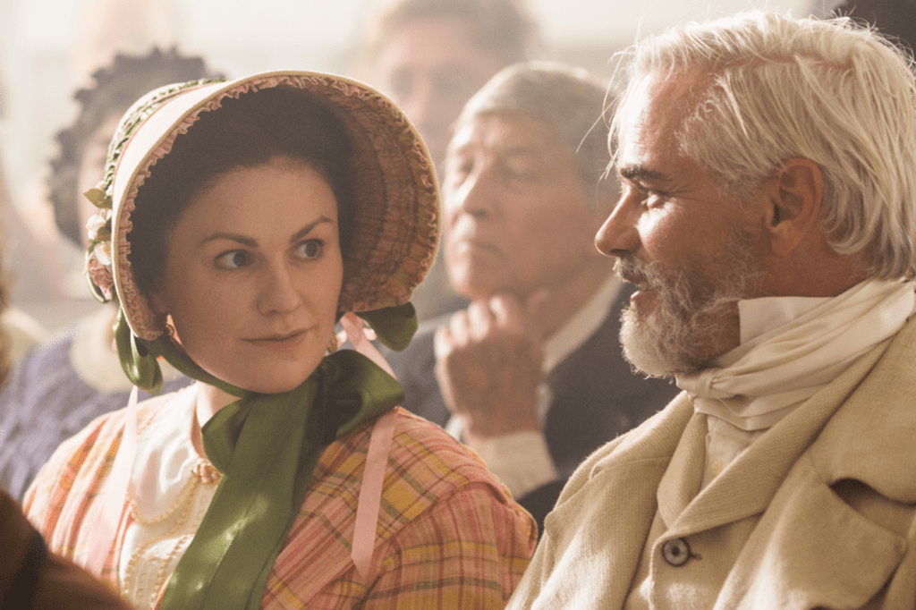 They make a bit more of the college boy who stays home ill and then starts frolicking with the hired help, which is how Mary ends up “in trouble,” and I appreciated that. Nancy is played by Anna Paquin, whom I don’t love. In real life, she’s a lovely woman, but in every movie she looks like she just had a stroke — and I don’t understand how that’s her “acting face.” Basically, my complaint is that her face does not match the emotions it seems like her character should have.