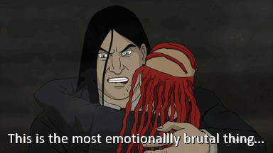 Recently, I was super disappointed in a book about black women in the heavy metal music scene. However, I was delighted (and terrified) to discover just how brutal Daphne du Maurier’s novel Jamaica Inn is. It’s so brutal it’s metal. Thus, I’m going to use gifs from the Adult Swim show Metalocalypse, which is about the world’s greatest (and fictitious) metal band, Dethklok, to help me.