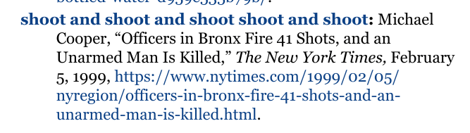 The repetition of “shoot” is cited. Does the cited article claim that the government wants black and brown people dead? No. I read it, and it’s a factual account of what happened, who the victim was, and how police typically respond vs. how these police did. Rhetorically, Cornejo Villavicencio fails to even paraphrase the article, instead sharing her own feelings and then pointing at an article to say, “SEE!?” which misrepresents Michael Cooper’s article and is unethical. Most of her sources are The New York Times, a news source for which Cornejo Villavicencio writes, suggesting there could be more variation in her research and possible conflict of interest.