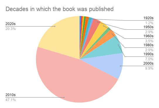 breakdown of my reading by decade