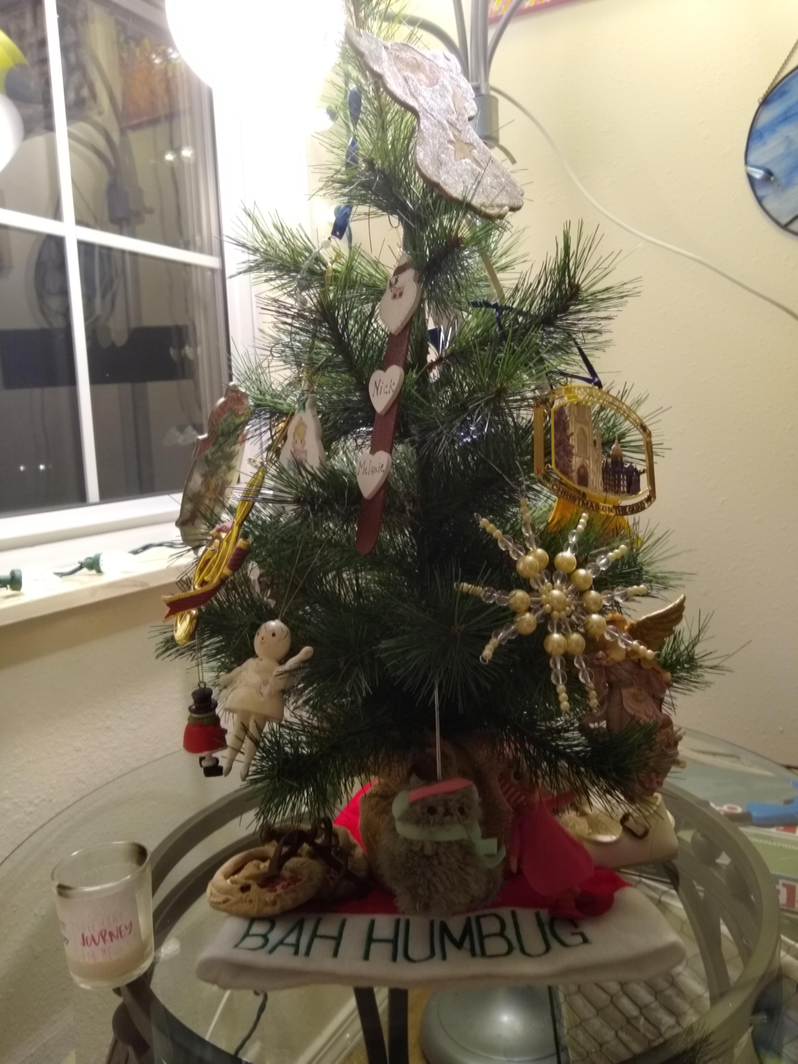 As December 25th approached, much of the week was dedicated to getting ready for it. On Tuesday the spouse and I baked three kinds of cookies so we could make little baggies to stick in the stockings at my folks’ house. There were butterscotch gingerbread stars, cranberry white chocolate chip cookie mix from Ten Thousand Villages, and the cream cheese chocolate chip cookie recipe recommended by Cupcakes and Machetes. Wednesday was Biscuit book club (during which Nick continued to construct his Franken-gift), and then Thursday we hit the road.