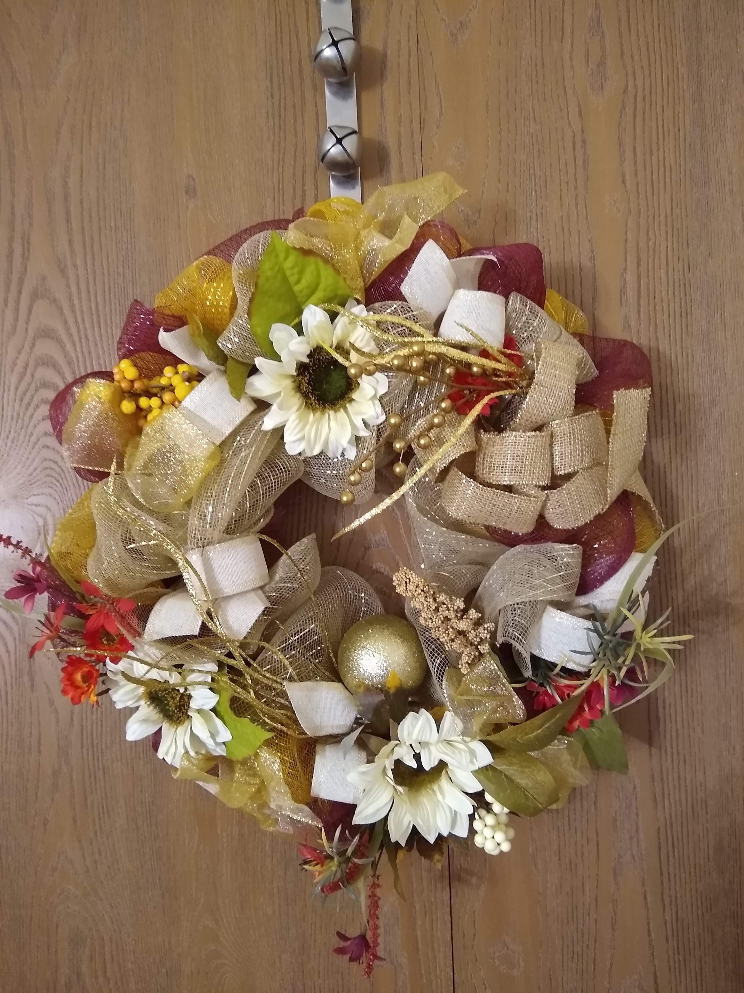 I got the wreath at a craft show. Nick and I went to quite a few of those this year and it was lots of fun. Craft shows are slowly moving away from the stuff that kind of looks like crafty trash and more into artisan construction-type things, if that makes sense.