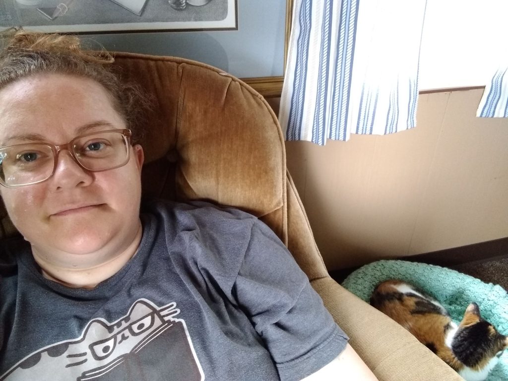 I drink my coffee with her, and she sits on me in the most inconvenient ways she can think of. It’s air conditioned, too. Also, I ended up saving the toad for a 3rd time today. I really am a bog witch, like that meme you sent me 😀