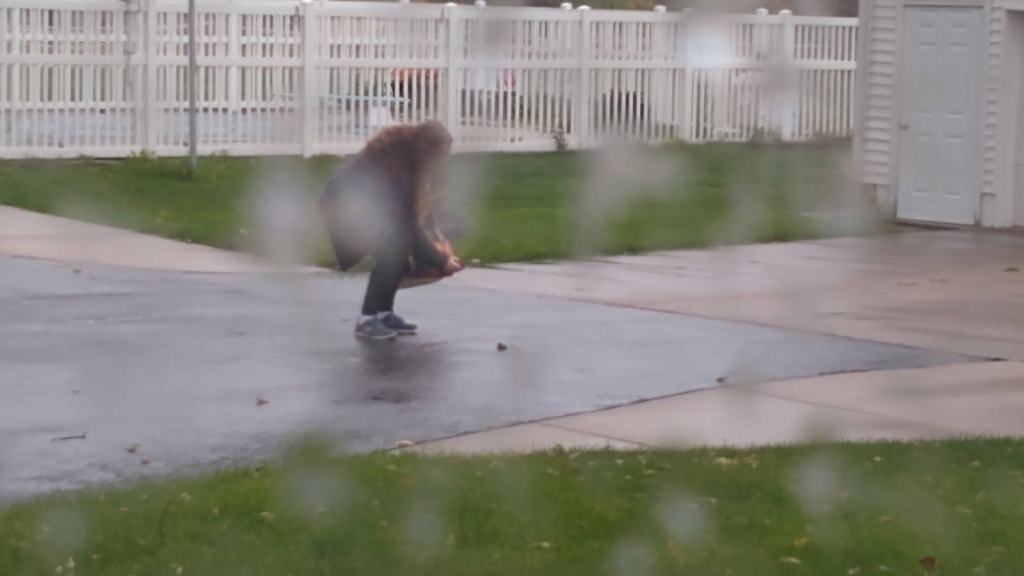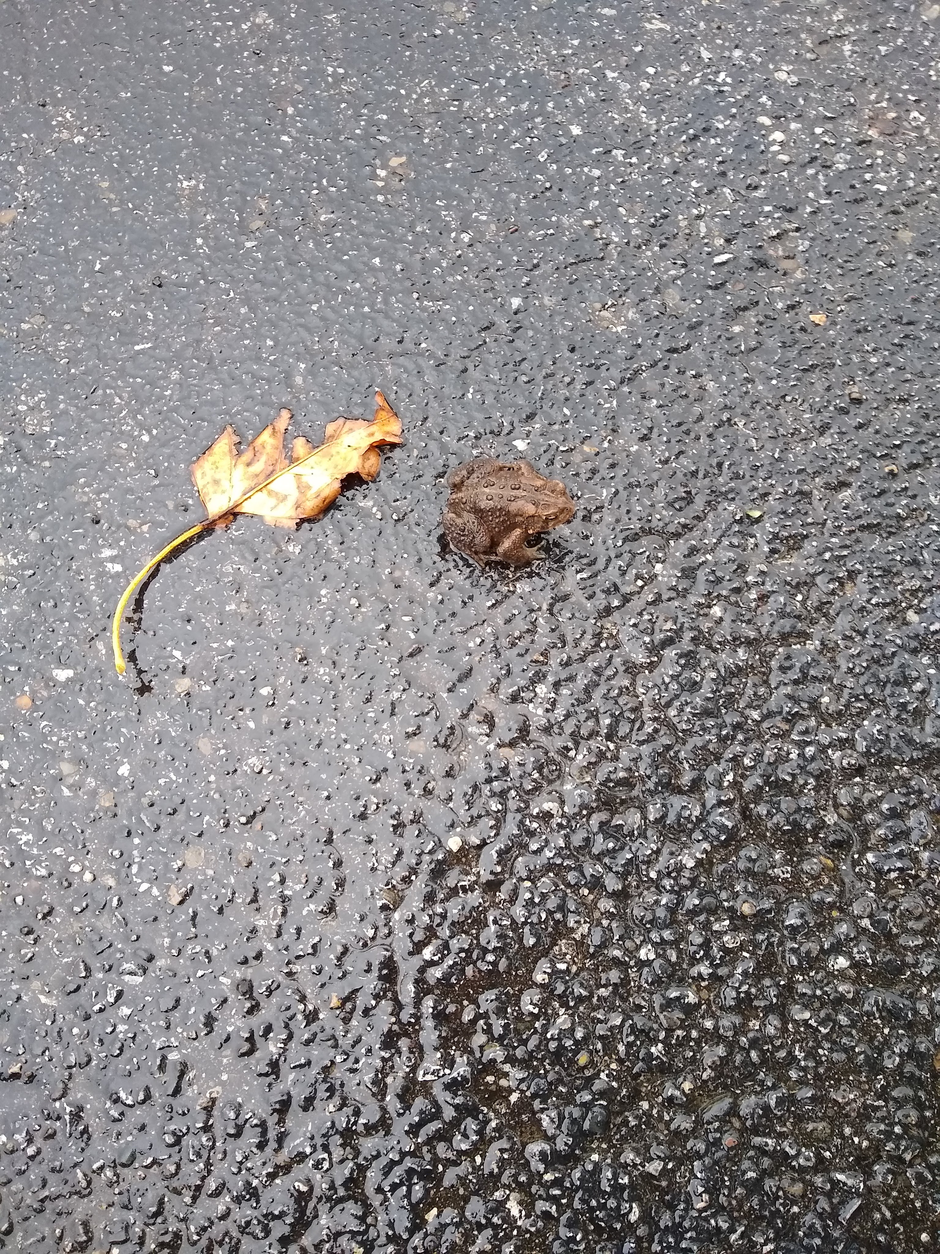 Toadman (or one of Toadman’s cronies) appeared in the driveway. I had to chase this toad around for a picture, and apparently Nick was taking a picture of me chasing a toad around in the rain so I could take the toad’s picture. Married life, ammiright?