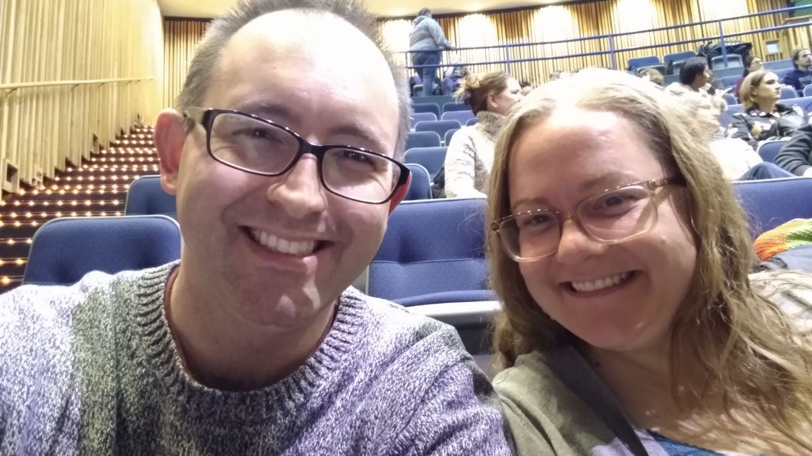 So, we made the 2 1/2 hour drive to Chicago and arrived early. There were people signing everywhere in the box office lobby! People of all ages, Queer people, Asian, Latinx, people with hearing aids and cochlear implants, students, hearing people, even a dog that has two Deaf dads and learned signed commands, like sit and play dead. I tried to stand close to groups in hopes of being included, but largely folks were communicating about how they knew each other, from where, and how long it’s been since they’d seen each other.