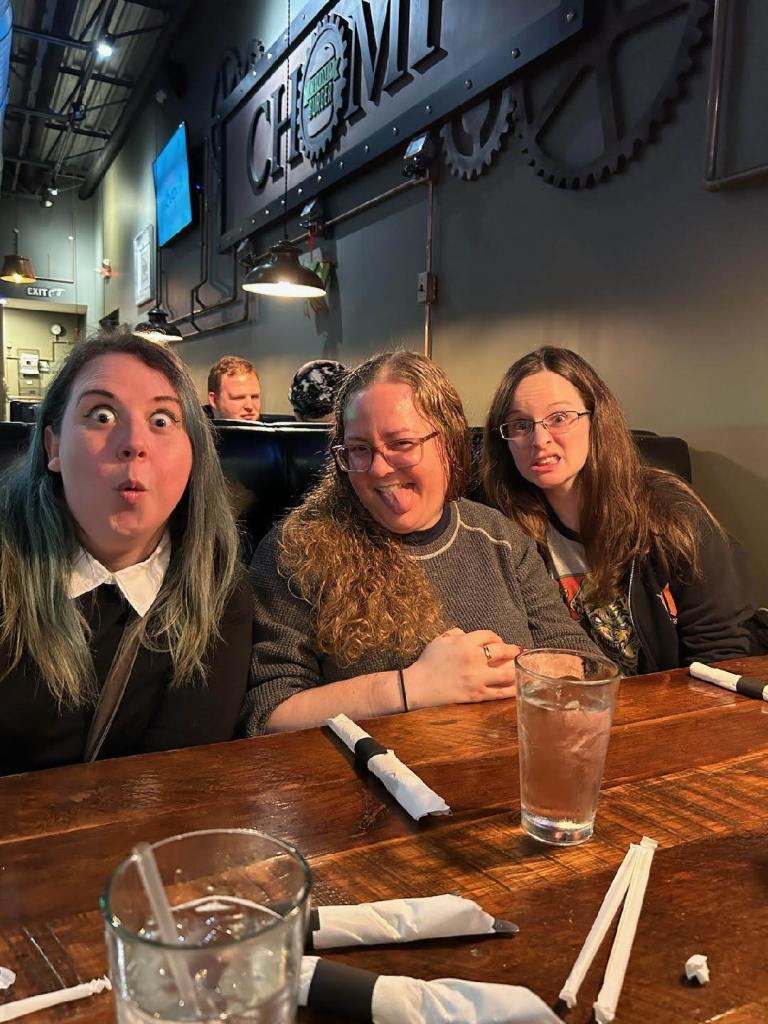 We three bloggers brought the spouses, too, who are sitting across from us. There are no more photos from this night, and that’s probably to protect the innocent after some of the stories and actions that went down. I had a great time and spent much of it laughing heartily. And also doing this new thing that people my age are doing: comparing notes on which age- or mental health-related issues we have. Who takes pills? Which ones?! Do they work? Etc. Honestly, it’s interesting that people with mental-health issues gravitate toward one another, because then when you look around, what you’re experiencing seems very, very normal, e.g. you assume everyone you know has problems getting to work or school in the morning because they have anxiety-induced intestinal distress and thus plan their routes around available bathrooms.