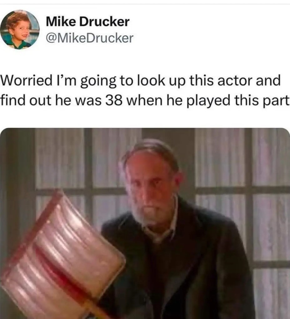 That meme with the old man and the shovel reminds me of one I saw recently: You know the old grumpy dad in Footloose who wouldn’t let the youths dance? He was 39.