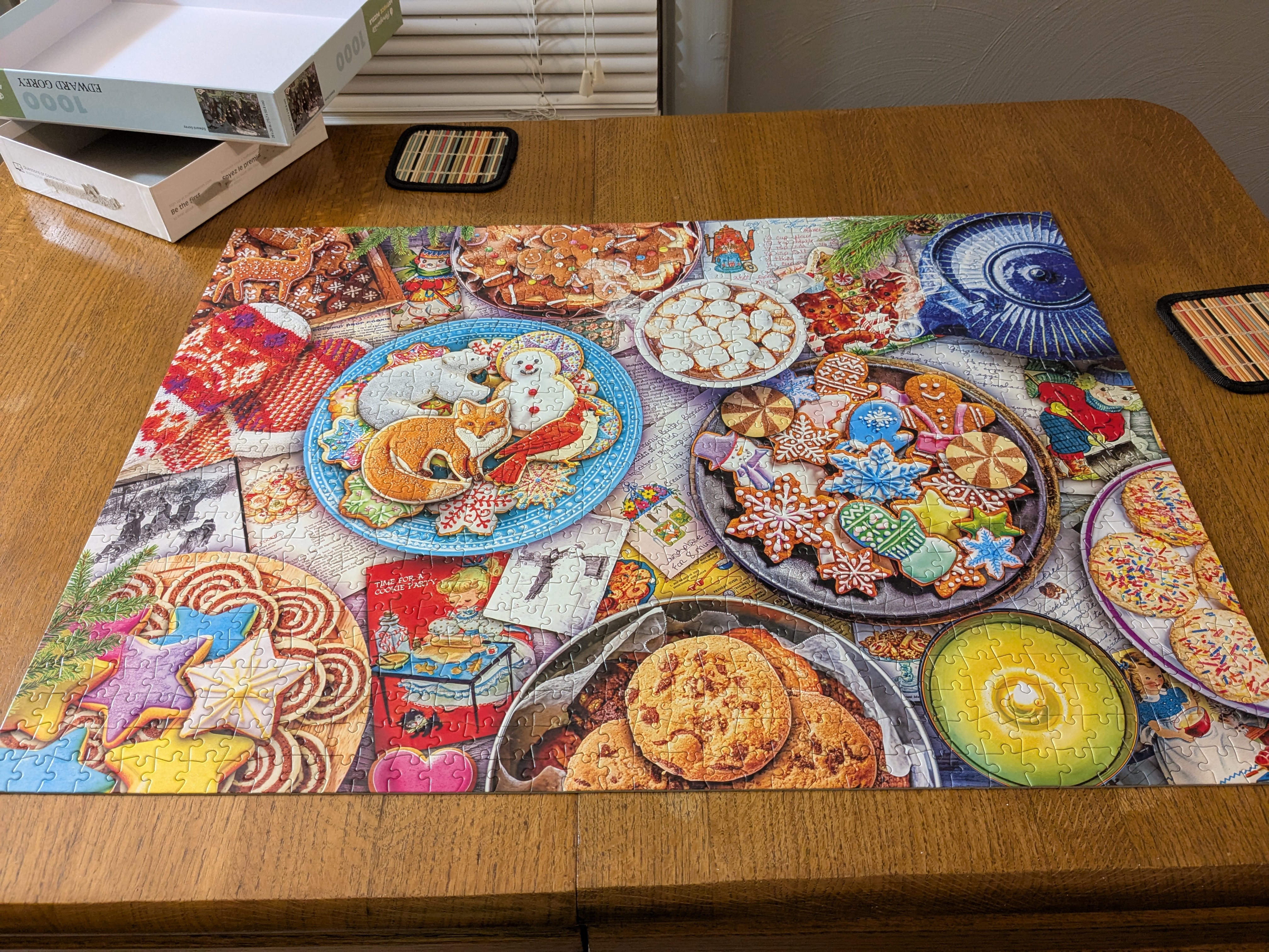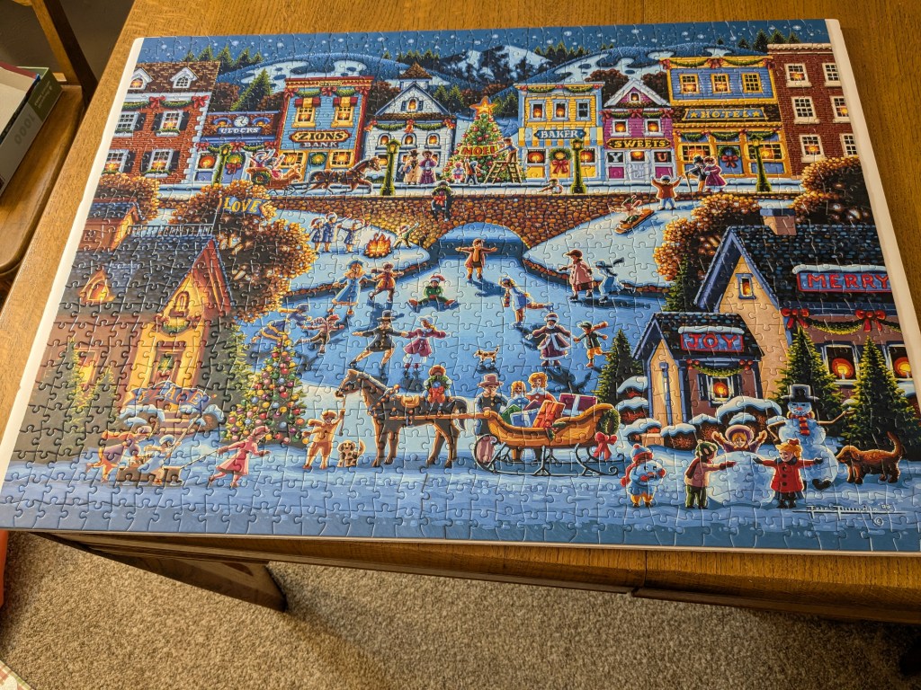 The puzzle with the cookies was really enjoyable because if you could take on one scene at a time and then piece them all together. The one with all the children playing was harder because the pieces were kind of loose, so that one was frustrating and we ended up putting it in a frame to just use as decoration next Christmas. The cookie puzzle, we took apart so that we can put it together again next year. I did eat several cookies at my friend’s house, though I’m surprised because apparently their mom never cooks, and yet they baked for Christmas, so who knows!