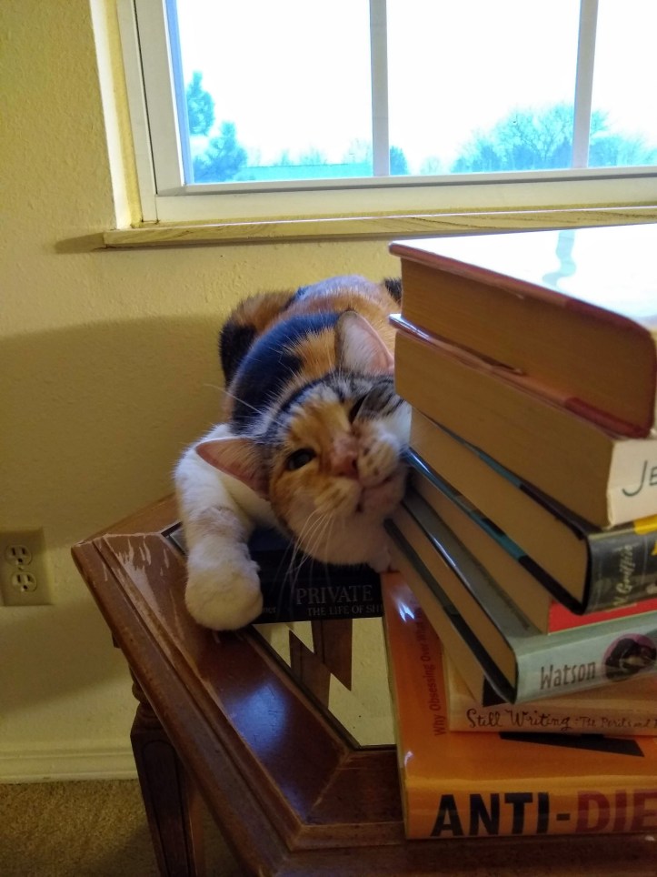 I’m so sorry that you’ve lost your beautiful kitty. I love the picture that you posted. It’s almost as if she’s daring you to take one of HER books.